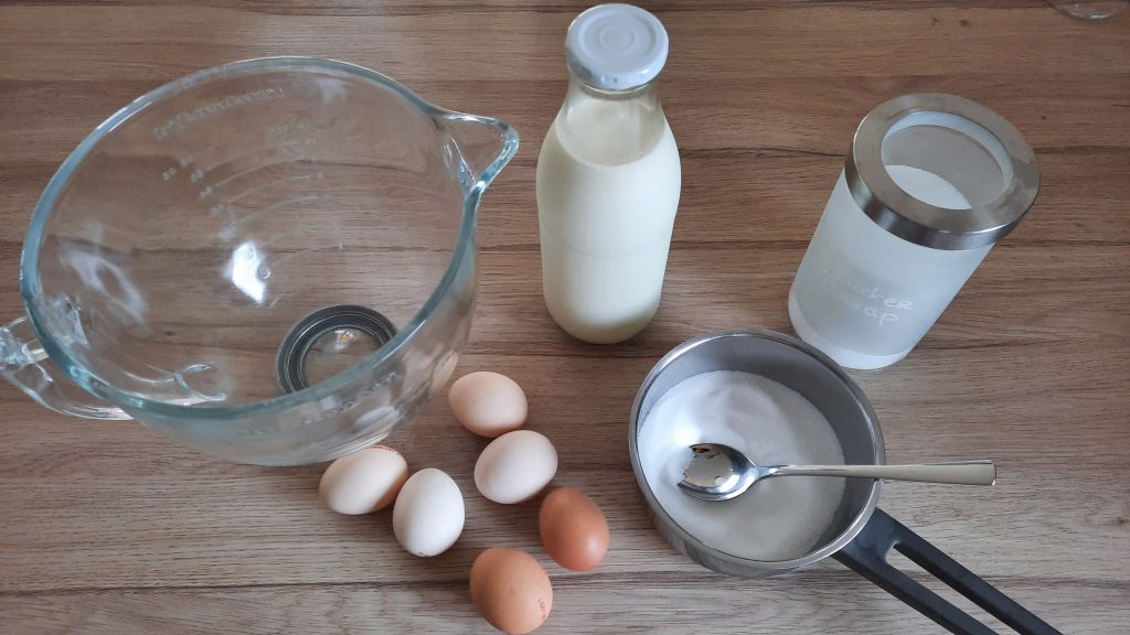 Milch und Eier sollten am besten Zimmertemperatur haben.