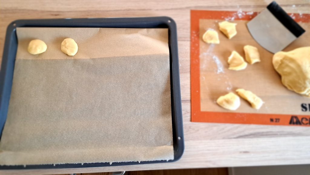 3. b) Oder man formt mit den Händen walnussgroße Bällchen und drückt sie anschließend leicht an: