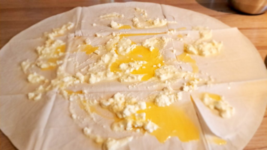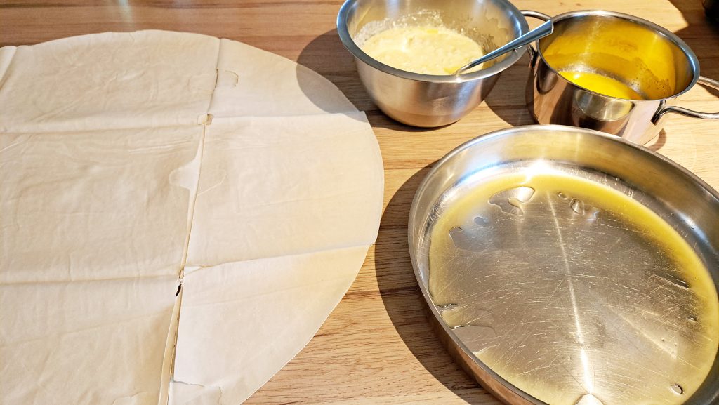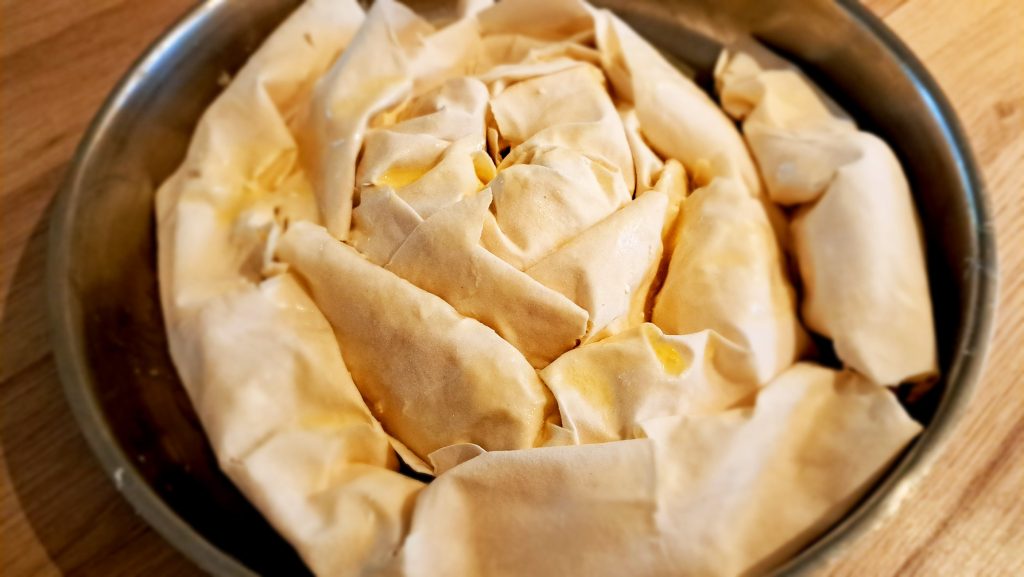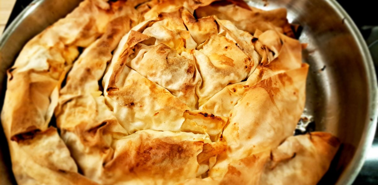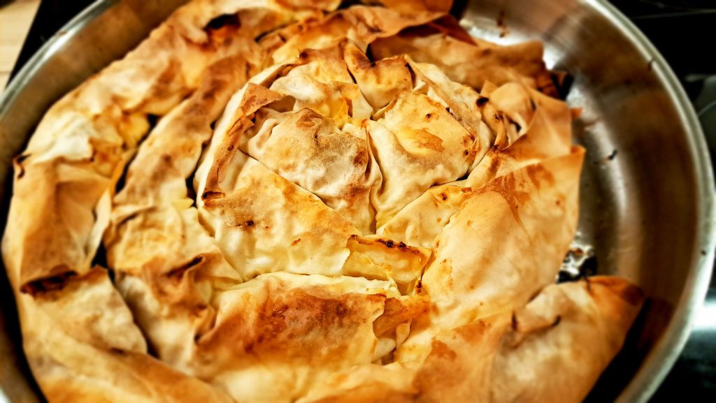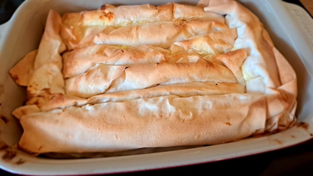 Und hier die fertige Baniza mit den hauhdünnen Teigblätter (Filoteig).